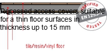 Recessed access covers suitable for a thin floor surfaces in thickness up to 15 mm